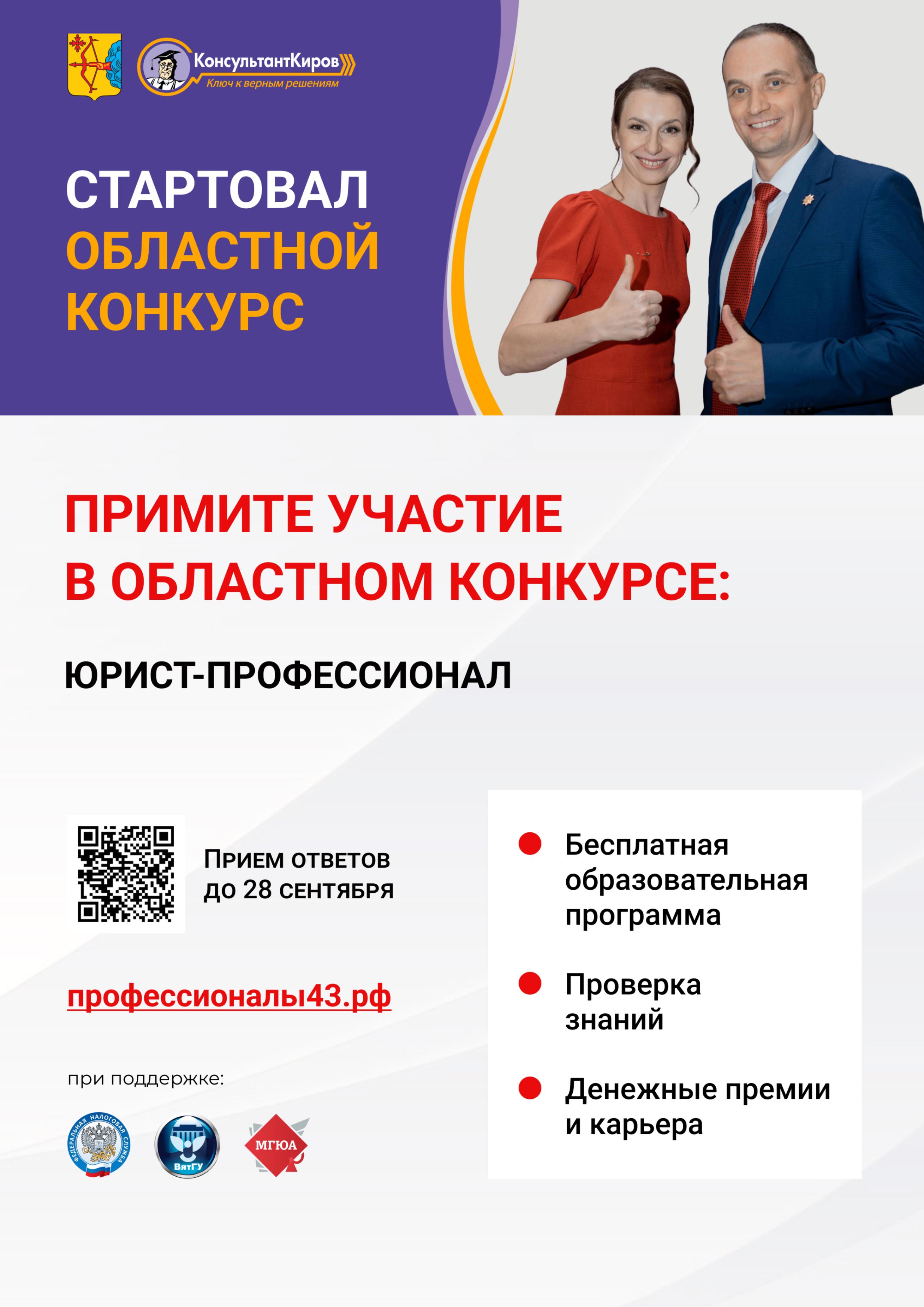 С 1 по 28 сентября компания "КонсультантКиров" при поддержке Правительства Кировской области проводит областной конкурс "Юрист-профессионал".