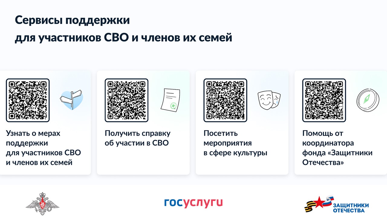 Министерством цифрового развития, связи и массовых коммуникаций Российской Федерации совместно с Министерством обороны Российской Федерации разработан информационный макет, содержащий ссылки на информационные ресурсы о мерах социальной поддержки для участников специальной военной операции и членов их семей.
