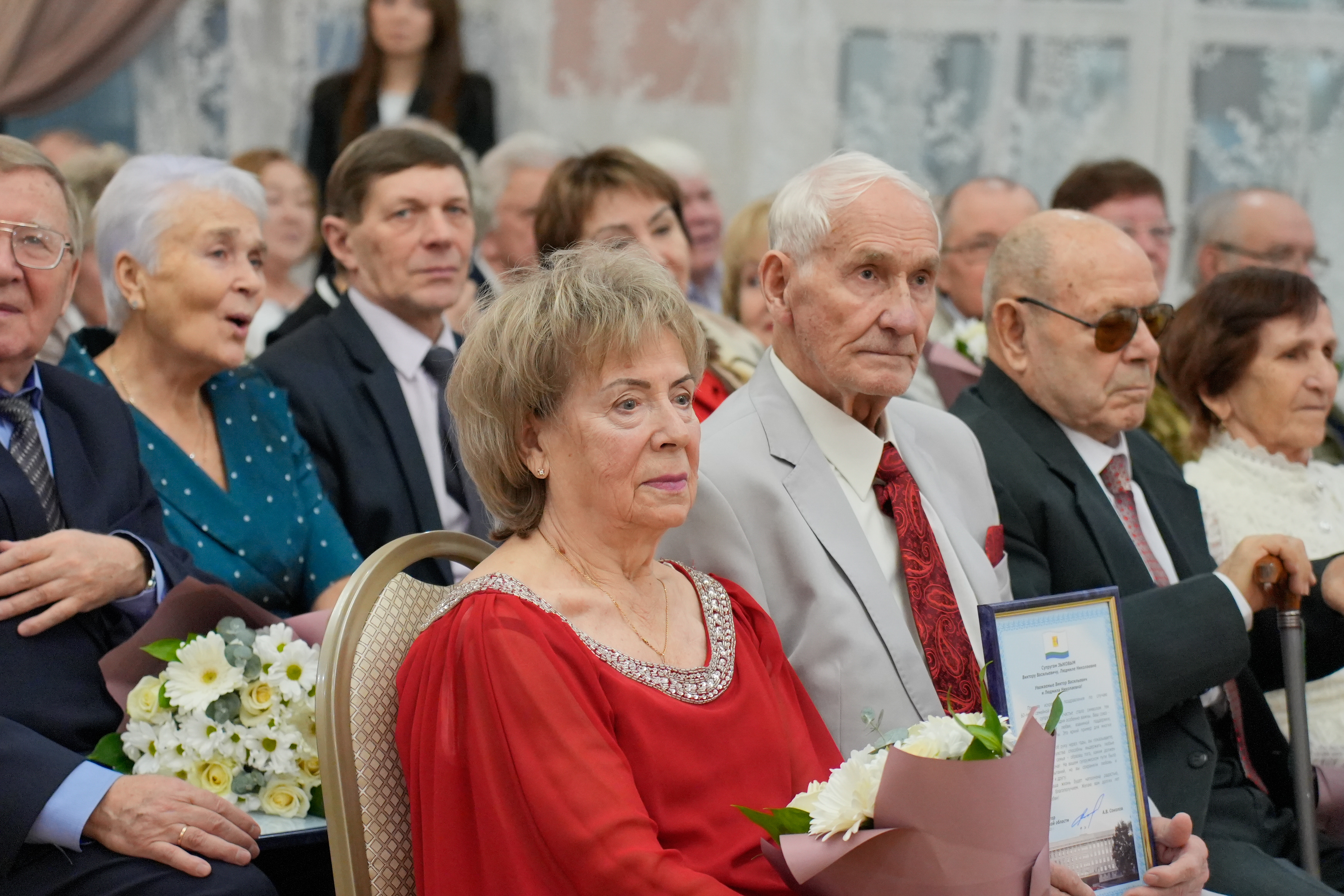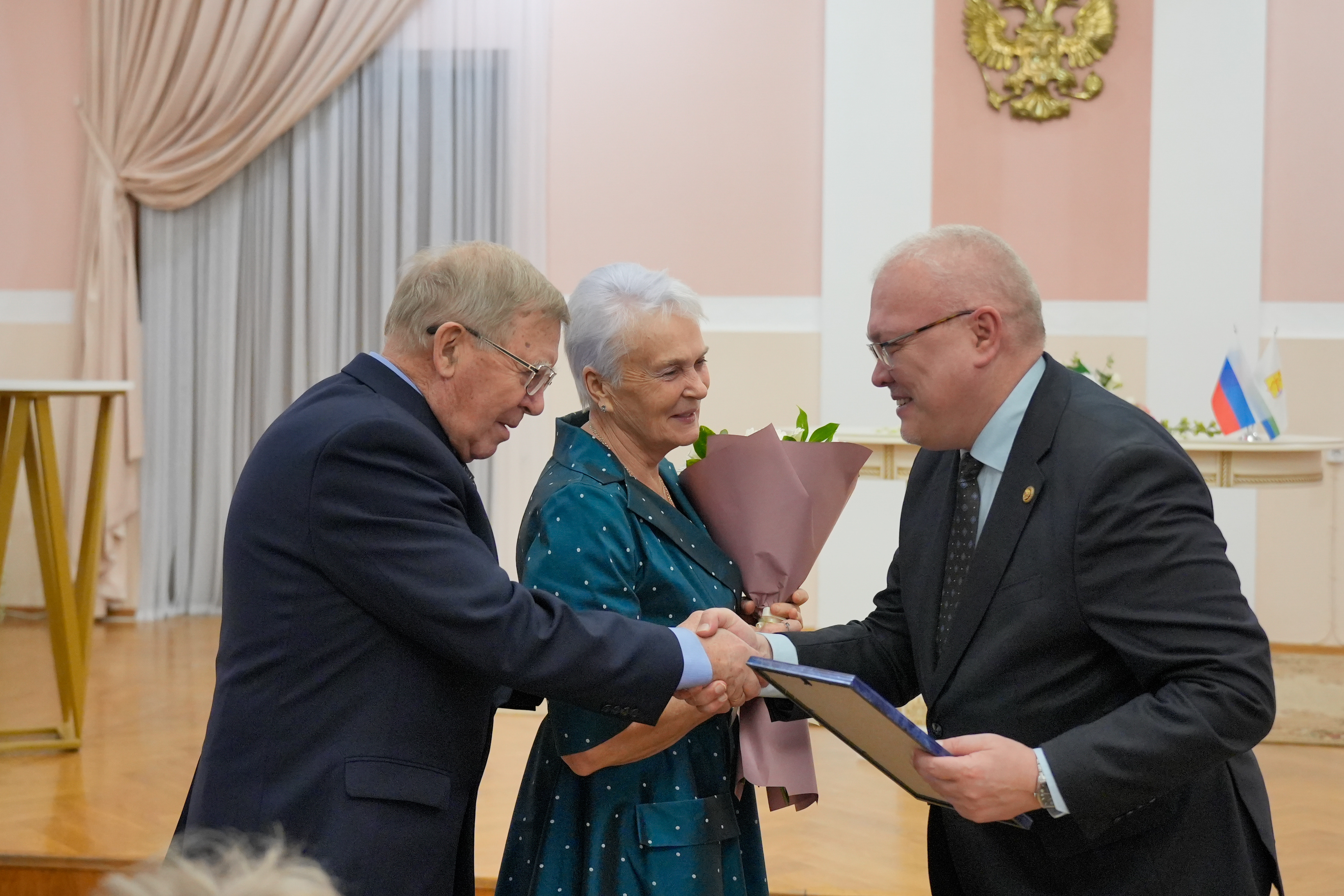 С приветственным словом к гостям обратился губернатор Кировской области Александр Соколов: «На таких церемониях ясно видишь: настоящее счастье рождается в семье. Это наши корни, наша поддержка, наш главный тыл. У каждой из пар своя история любви. И свой, проверенный десятилетиями секрет семейного счастья. Секрет, который делает наш регион и всю страну крепче. Пусть на вятской земле будет еще больше семей, где рождаются дети и множится счастье».